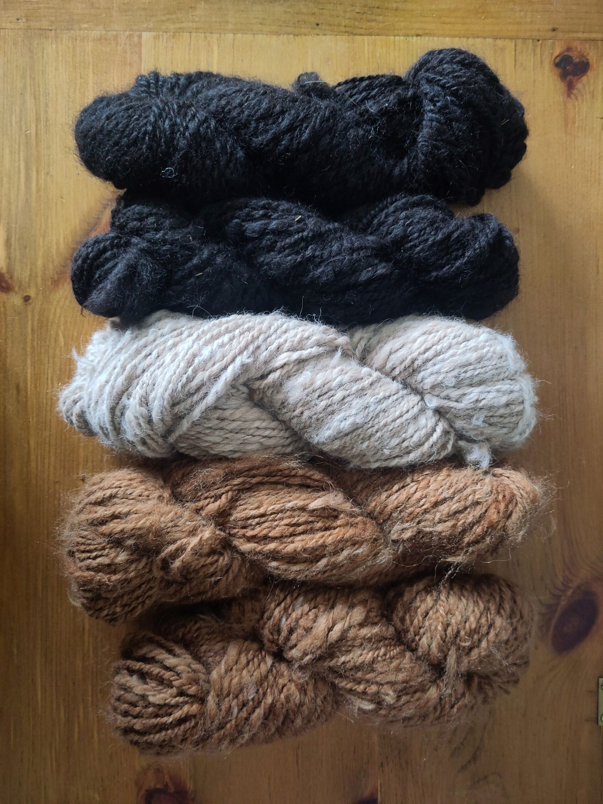 this fibre is sourced from a local farm just 20 miles from cardiff, near newport. after collecting, it’s washed in small batches of around 400g and carded with my hand carders. it then gets spun into two singles of about 50g each, before being plied together. the yarn is then finished by soaking it in water and hanging it to dry attached to a small weight to help set the spin.
